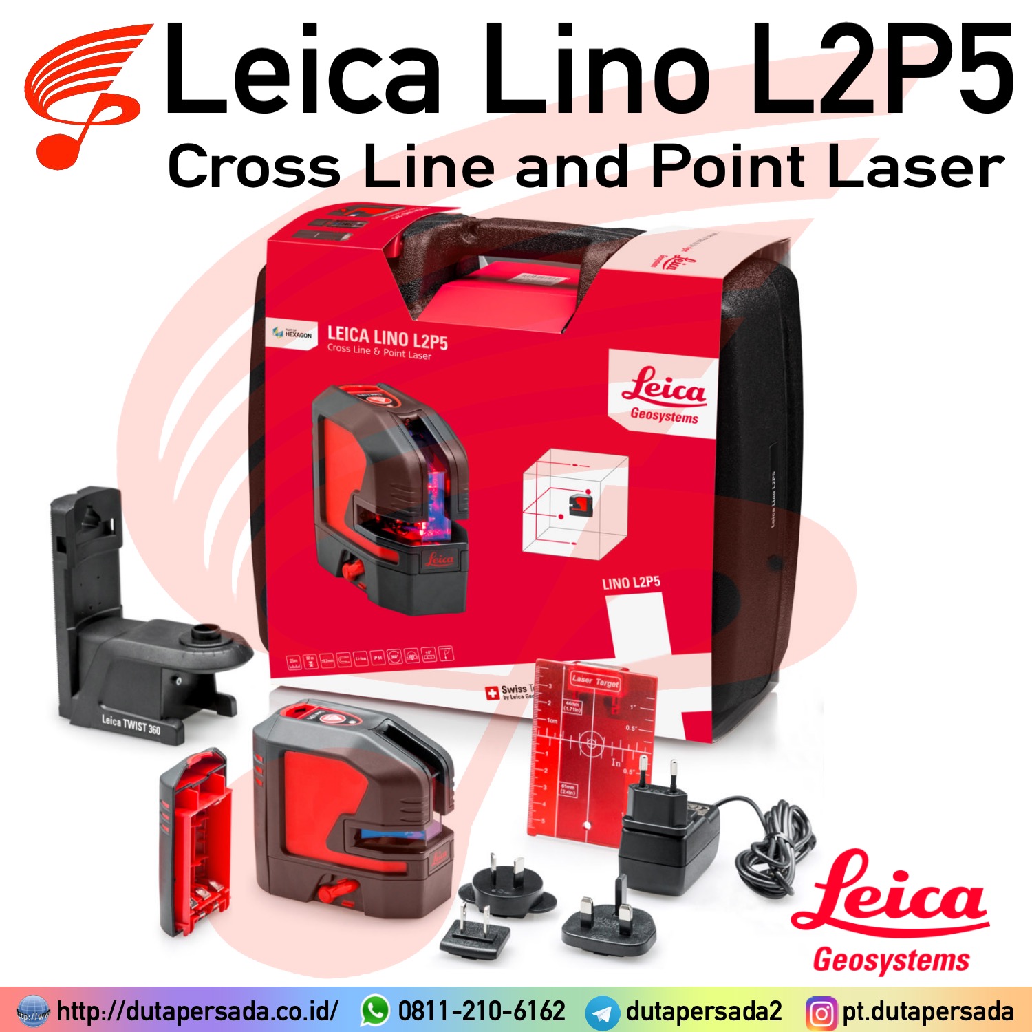 The Leica Lino L2P5 is a a self-levelling cross-line and point laser. This Lino is ideal for alignment tasks such as tiling, drywalling, partitioning and electrical installations as well as plumb point projection, setting out or transferring measured points.