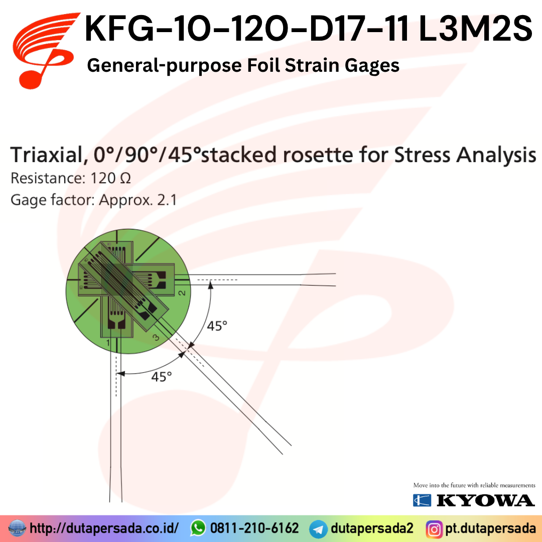 The Kyowa KFG‑10‑120‑D17‑11 L3M2S is a foil strain gage from the KFG series, designed for precise stress and strain measurement. With a 10 mm gage length and D17 grid pattern, it is suitable for analyzing complex stress distributions in structural and mechanical components.